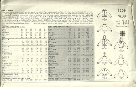 Butterick 6209 1980s Fast And Easy Mens Jacket Pattern Etsy De